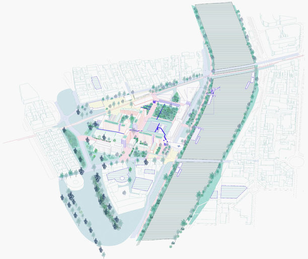 The University Hospital Complex (CHU), located in the densely built-up heart of Nantes, appears to be a place of possibilities. Both in terms of its size and the diversity of its spaces, buildings and interfaces, it offers the possibility of combining styles, heights, views and lives. What already exists holds the promise of a diversity of possibilities. It’s a town where the density of the buildings and the minerality of the land make us forget the island’s past, and its centuries-old relationship with the Loire.